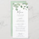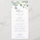 Modern wedding menu featuring watercolor eucalyptus leaves.