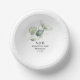 Modern minimalistic Eucalyptus monogram wedding paper plates that you easily customize with your names and wedding details by clicking the "Personalize" button