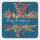Watercolor Fall Foliage Thanksgiving | Blue Square Sticker