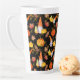 This is a beautiful tall latte mug with gnomes, pumpkins and leaves in fall colours on a black background. Great to help keep you warm as the weather starts getting colder by drinking your favourite hot drink in it.