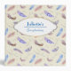 Personalized binder with room for your name and a custom title such as photo's, scrapbooking, recipes, genealogy etc...set on a fancy oval frame with a gold gradient border. A pattern made up of watercolor feathers with varying stripes, spots and plain designs with colours in blue, pink, orange and brown colours. Branches and twigs with leaves and pussy willow buds also decorate the design. The background is a solid cream colour.
