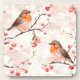 Watercolor Finch in a Snowy Winter Tree & Berries Coaster