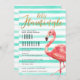 Give your shower a tropical theme with this beautiful watercolor pink flamingo with mint stripe background Let's Flamingle shower invite.