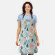 A seamless tropical pattern apron featuring elegant pink flamingos with speckled feathers and long, graceful necks. Set against broad brushstrokes in soft teal, mint, blush, and beige, the design mimics abstract palm fronds and foliage. Accented with dark stylized leaves flecked with gold and scattered black dots, this artistic watercolor-style pattern captures a dreamy, modern tropical vibe. Ideal for summer, beach themes, or tropical-inspired aesthetics.