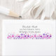 Watercolor flowers in shades of purple, blue and pink with peach accents. Set on a white background. Flowers in shades of purple, blue and pink with peach accents. Set on a white background. Personalize with your name and address in dark gray mixed font.