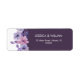 A romantic purple floral wedding return address label featuring soft watercolor flowers in lavender, blush, and white on a deep plum background. This elegant address sticker is perfect for wedding invitations, RSVP envelopes, save the date mailings, thank you cards, and matching wedding stationery suites. A beautiful choice for couples who want a feminine floral look with a rich, sophisticated purple color palette.