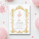 Celebrate a birthday with elegance and grace using this beautiful ballet dancer invitation. The front design features a stunning golden ornate frame adorned with delicate watercolor roses and a captivating ballerina poised en pointe. This exquisite design is ideal for creating a memorable first impression for a birthday party. The reverse side continues the enchanting theme with a collection of sweet watercolor illustrations, including carousel horses, a rocking horse, and a hot air balloon, complemented by a convenient QR code for seamless RSVPs. Make their special day unforgettable with this enchanting invitation.