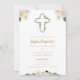 This invitation features watercolor florals and a cross to invite family and friends to a baptism, christening, or first holy communion.