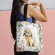 Watercolor Floral Bunny Rabbit Personalized Name Tote Bag