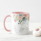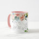 Trendy chic botanical watercolor floral coffee mug featuring bouquets of slate blue and blush pink peony roses with green leaves and foliage, hand-drawn branches, and an elegant coral pink typography script monogram / name initial. ++++++++++++++ Easy to personalize with your letter! ++++++++++++ Could be a pretty gift suitable for event planners, florists, landscapers, garden designers, interior decorators, boutique owners, store managers, beauty salon administrators, makeup artists, beauticians, cosmetologists, hairstylists, nail technicians, lifestyle bloggers, personal stylists!