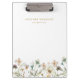 Watercolor Floral Clipboard. Chic & Stylish, this beautiful floral clipboard features stunning hand-painted watercolor blush pink, dusty blue, and bright yellow delicate pressed vintage wildflowers with sage green botanicals. The text is yellow-gold, but it can easily be changed.