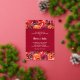 Belles fleurs d'aquarelle en rouge, orange, violet foncé et feuilles verts et vos détails mariages en lettrage blanc chic sur une véritable feuille d'argent bordé d'une bande rouge profonde. CORRESPONDRE des articles dans notre magasin.