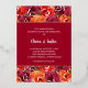 Belles fleurs d'aquarelle en rouge, orange, violet foncé et feuilles verts et vos détails mariages en lettrage blanc chic sur une véritable feuille d'or rose bordée d'une bande rouge profonde. CORRESPONDRE des articles dans notre magasin.