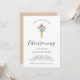 Watercolor Floral Cross Kraft Look | Christening Invitation
