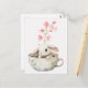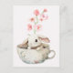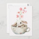 Watercolor floral cute bunny tea cup postcard