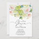 Brunch and bubbly bridal shower invitations feature your details in chic lettering accented with beautiful watercolor flowers - white and green hydrangeas, pink and cream roses, daisies, small stems and leaves and dusty blue on the back. MATCHING items in our store.