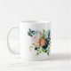 Navy blue and blush watercolor botanical bouquet with sage green foliage with a gold copper monogrammed square making a girly glam personalized mug for her. +++++++++ Easy to customize with name signature and monogram name initials.