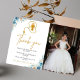 Blue Watercolor floral photo first holy communion thank you card