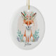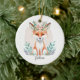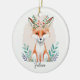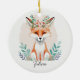 Watercolor floral fox personalized ceramic ornament