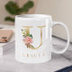 Watercolor Floral & Gold Letter U Monogram Coffee Mug