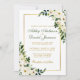 Watercolor Floral Botanical Green and White with Gold Frame Wedding Invitation with Gold and Green Text