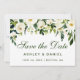 Watercolor Floral Green and White Save The Date Engagement Card Green Back - Green Script