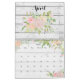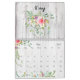 Beautiful floral collection featuring bouquets and sprays of pastel hand drawn style watercolor flowers. Each calendar month page displays a different mix of foliage and flowers including roses, hydrangeas, hyacinths, anemones and poinsettias on a rustic white wood background with coordinating custom grid pages.