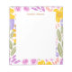 A beautiful notepad with a colorful, hand drawn pattern of watercolor blooming flowers.