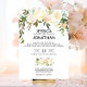 Simply elegant floral rustic bouquet design in watercolor (watercolour) green greenery, pink, beige, champagne, vanilla white flowers on white background and black letters. Delicate wedding invitations for that spring or summer wedding theme. Perfect outdoor wedding cards. Back of card has bride and groom names. See all wedding stationary.