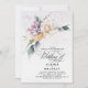 Featuring a delicate watercolor floral design, the invitation showcases a harmonious blend of purple and off-white hues. The modern calligraphy adds a touch of sophistication, while the whimsical elements bring a sense of playfulness to the overall design
