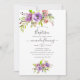 Purple and peach roses and peonies floral baptism invitation with accents of coral, plum and sage green.