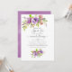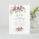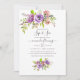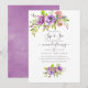Purple and peach roses and peonies floral sip and see invitation with accents of coral, plum and sage green.