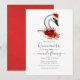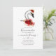 Elegant red roses swan themed birthday party invitations with hints of gold glitter.