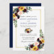 Watercolor Floral Wedding Blue Gold Frame Invitation
