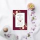 Modern Elegant Watercolor Burgundy Floral Wedding Invitation includes burgundy roses, pink roses, red roses and botanical greenery. Burgundy Background. Two Frames - Double Frame - Gold Foil