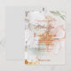 Watercolor floral wedding invitation featuring soft blush and peach blooms with elegant typography.