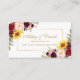 Elegant Watercolor Floral Wedding Registry Insert Card includes burgundy marsala roses, pink roses, red roses, sunflowers and botanical greenery. Gold Script.