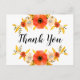 "Thank you" postcard with coral watercolor flowers on white background and customizable text.