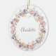 Watercolor Floral Wreath Personalized Name Ceramic Ornament