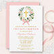 Watercolor Floral Wreath Pink Bow Gold Communion Invitation