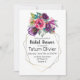 A delightful bouquet of roses and more in shades of pink, lavender, purple, peach, aqua, teal and plum adorn this feminine bridal shower invitation.
