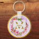 Watercolor Flower Gold Frame | Custom Name Keychain