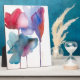 With an original art design by artist Sacha Grossel taken from an original watercolour painting of fluid painted blue and crimson red watercolour flowers in a modern floral design. This contemporary floral design is beautiful, unique and on trend.