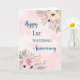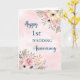 Happy 1st wedding anniversary card with beautiful pink watercolor flowers pattern and sentimental verse.