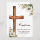 Watercolor Flowers and Cross Baptism Invitation