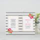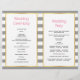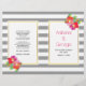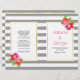 Outstanding pink and purple tropical watewrcolor flowers and grey, white stripes folded wedding ceremony and party program. Beautiful tropical flowers adorn this elegant and modern floral wedding design. Your text is placed on white frames with gold outlines. Choose the value paper as it folds well and fold it in half manually.