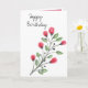 Watercolor red and magenta Flowers Happy Birthday card.