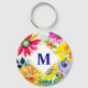 Pretty pink, yellow and purple watercolor ai art flowers floral key chain. Add initial in the personalized area.