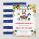Gorgeous Watercolor yellow, blue and red Flowers and Panda design with balloons, bunting, confetti and gold glitter confetti borders