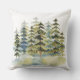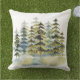 Watercolor Foggy Green Pine Forest Outdoor Pillow